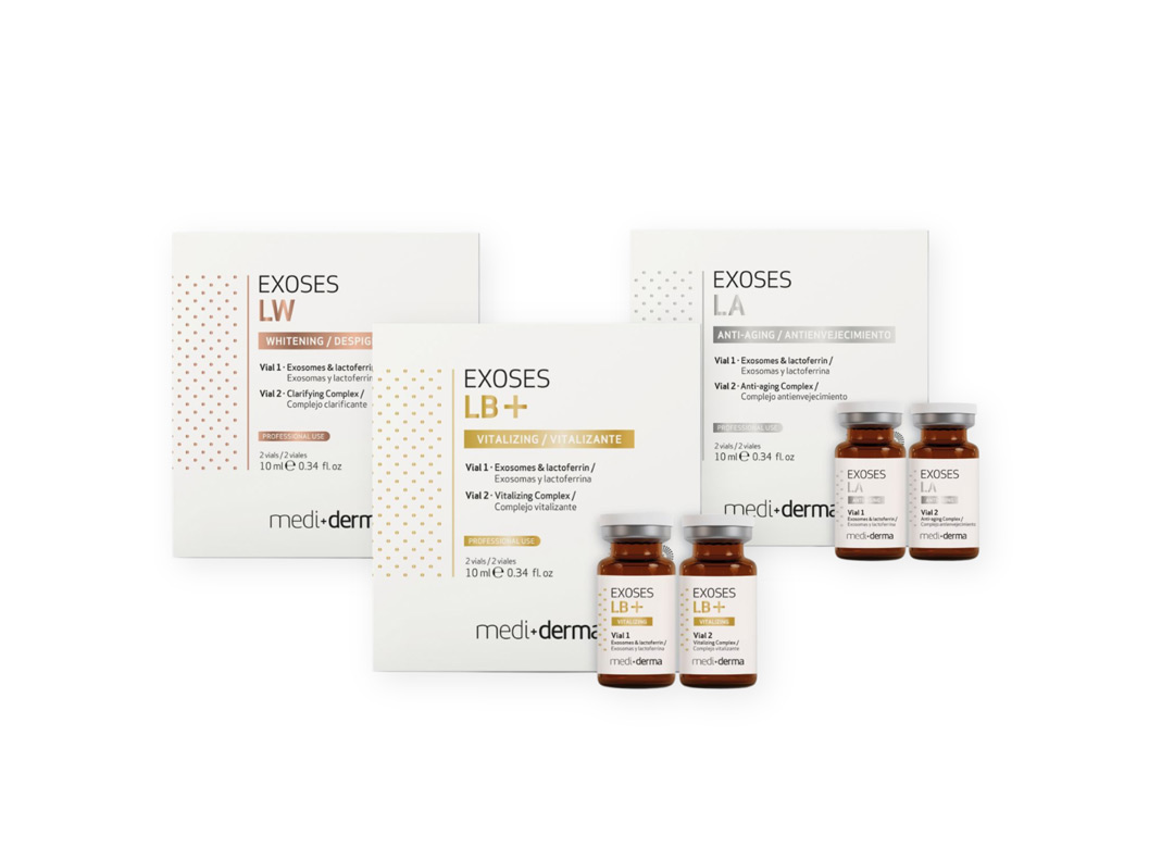 Zaawansowane zabiegi gabinetowe oparte na egzosomach Lactobacillus brevis (LCTB) i liposomowanej laktoferynie przywracają skórze równowagę, witalność i młodzieńczy wygląd. Każdy z trzech zabiegów odpowiada na konkretne potrzeby skóry: EXOSES LB+ regeneruje i nawilża, EXOSES LA działa przeciwstarzeniowo, EXOSES LW redukuje przebarwienia.Dzięki synergii egzosomów, czynników wzrostu, witamin, aminokwasów i antyoksydantów zabiegi wspierają odnowę komórkową, chronią przed stresem oksydacyjnym i przywracają skórze zdrowy wygląd.