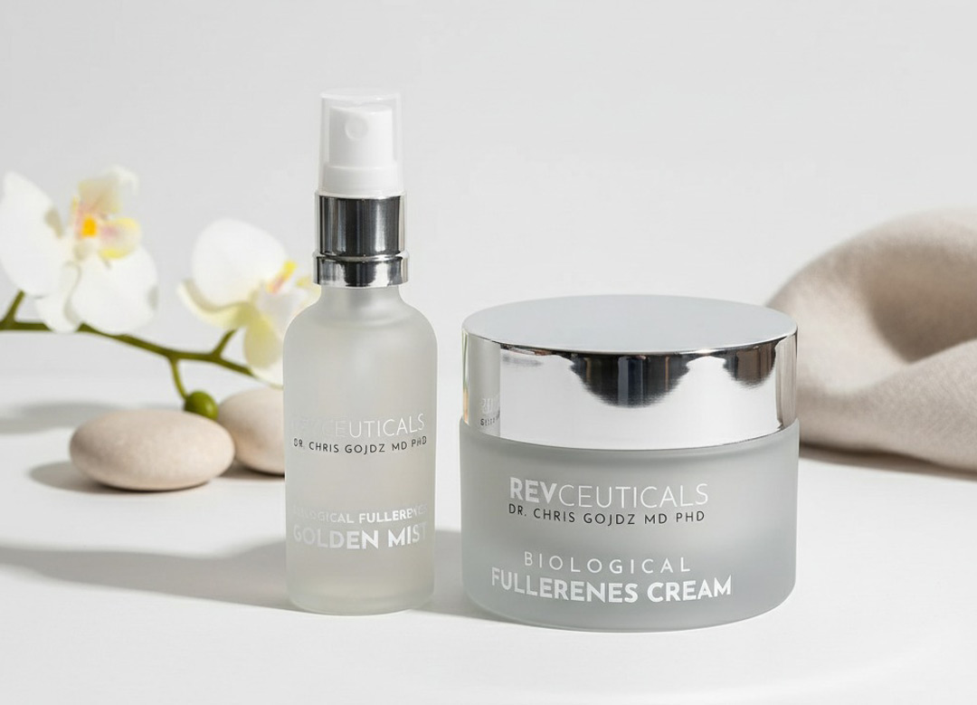 Innowacyjny duet biotechnologiczny nowej generacji łączący krem i mgiełkę opartą na biologicznych fulerenach – naturalnych, nietoksycznych nanostrukturach o potencjale antyoksydacyjnym wielokrotnie przewyższającym witaminę C.Synergiczne połączenie fulerenów z mikrocząsteczkami złota, srebra i platyny zapewnia regenerację na poziomie komórkowym i ochronę przed stresem oksydacyjnym. Zaawansowana technologia transdermalna umożliwia głęboką penetrację składników i aktywację procesów naprawczych skóry.
