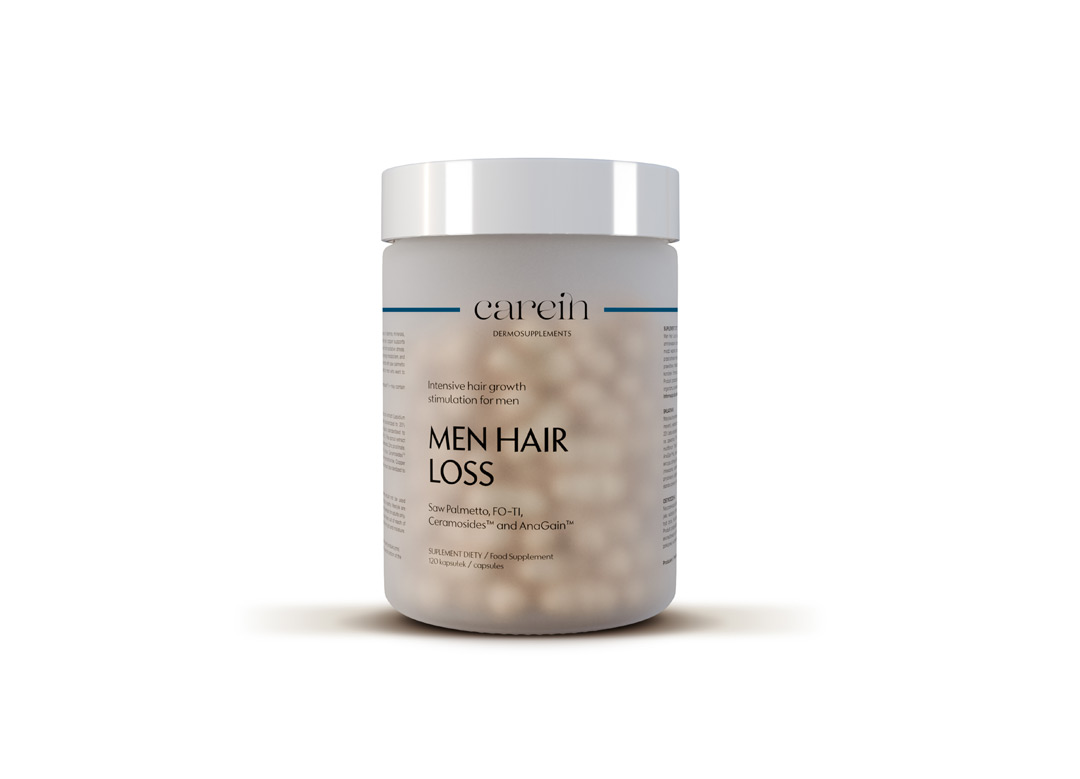 Trychologiczny dermosuplement wspierający walkę z łysieniem androgenowym u mężczyzn. Stymulujeodrost włosów i wydłuża fazę anagenu. Unikalna formuła 21 składników działa bezpośredniona kluczowe mechanizmy odpowiedzialne za miniaturyzację i wypadanie włosów. W składzie aż 5 inhibitorów 5α-reduktazy, tj. palma sabałowa, ekstrakt z pestek dyni, Fo-Ti, maca i skrzyp polny. Preparat wspiera także naturalną pigmentację, ograniczając przedwczesnesiwienie.