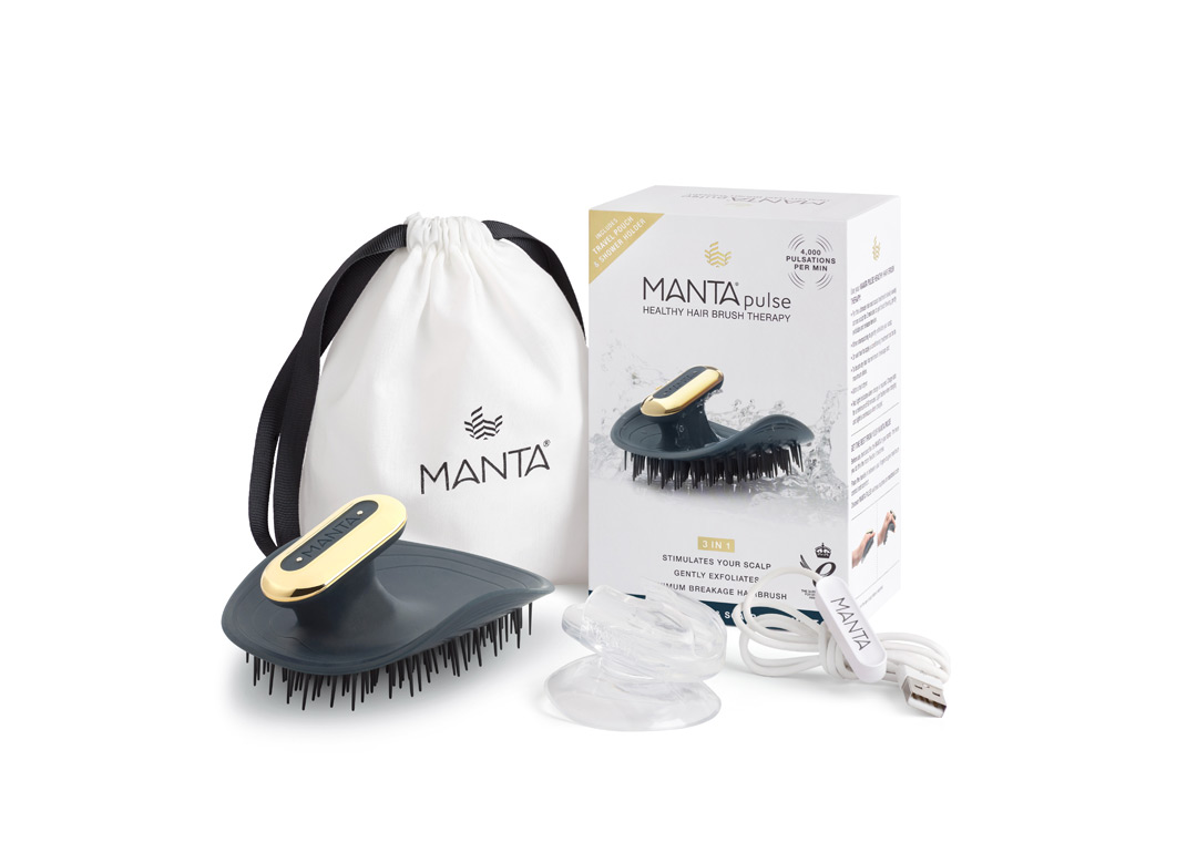 Szczotka MANTA® Pulse zapewnia kilka zastosowań. Łączy delikatne rozczesywanie mokrych i suchych włosów z dobroczynnym działaniem magnetycznych pulsacji, które stymulują skórę głowy, poprawiają krążenie dla zdrowego wzrostu włosów, złuszczają podczas mycia i zapewniają relaksujący masaż redukujący stres. Opatentowana technologia FLEXGUARD™ w podstawie umożliwia każdemu włosiu szczotki ruch o 360°. Odporna na wysokie temperatury i antystatyczna.