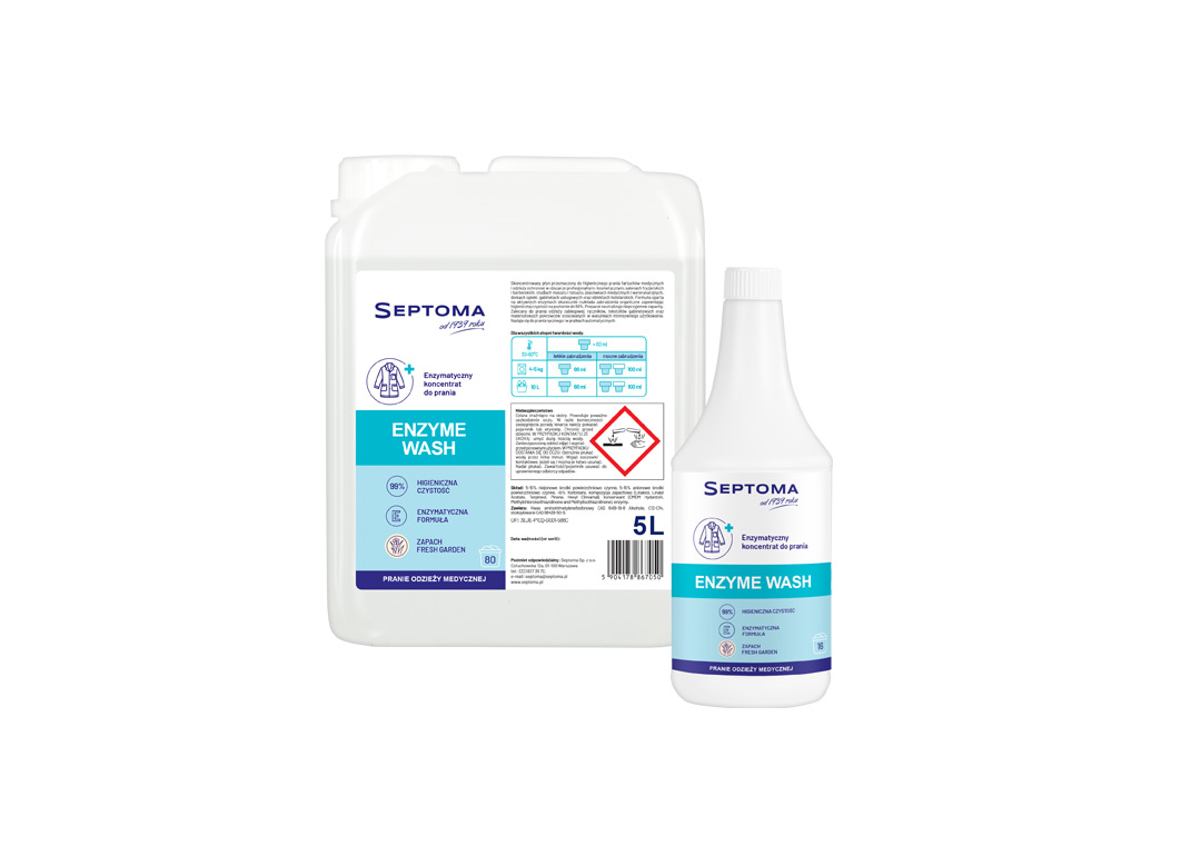 Skoncentrowany płyn przeznaczony do higienicznego prania fartuchów medycznych i odzieży ochronnej w obszarze profesjonalnym, m.in.: salonach kosmetycznych, fryzjerskich i barberskich, studiach masażu i tatuażu, placówkach medycznych oraz obiektach hotelarskich. Formuła oparta na aktywnych enzymach skutecznie rozkłada zabrudzenia organiczne, zapewniając higieniczną czystość na poziomie do 99%. Preparat neutralizuje nieprzyjemne zapachy i ogranicza ryzyko rozwoju drobnoustrojów. Odpowiedni do prania ręcznego i w pralkach automatycznych.