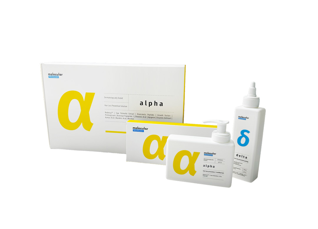 Profesjonalna kuracja trychologiczna przeciw wypadaniu włosów, uwzględnia różne przyczyny utraty włosów i stymuluje ich porost. Peeling Delta Hair Loss, Szampon Alpha i Ampułki Alpha bazują na składnikach o potwierdzonym naukowo działaniu, takich jak Redensyl™, proteoglikany, biomimetyczne peptydy i czynniki wzrostu. Kuracja wspiera aktywację mieszków włosowych, poprawia mikrokrążenie i wydłuża fazę anagenu. Zestaw przeznaczony do zabiegów profesjonalnych i do pielęgnacji domowej.
